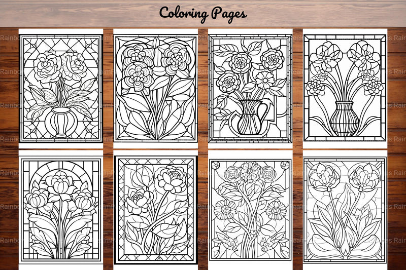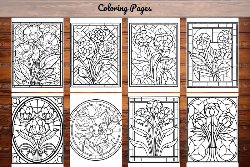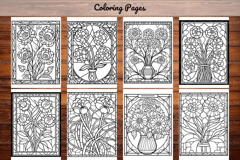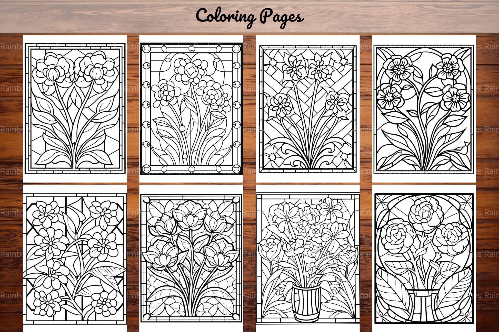 Bloom with this 180 Stained Glass Flower Coloring Book, featuring intricate floral stained glass designs, perfect for detailed flower coloring.