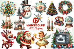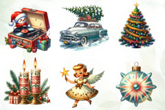 Nostalgia with this 1950s Retro Christmas Clipart Bundle, featuring mid-century holiday designs, perfect for vintage Christmas crafts.