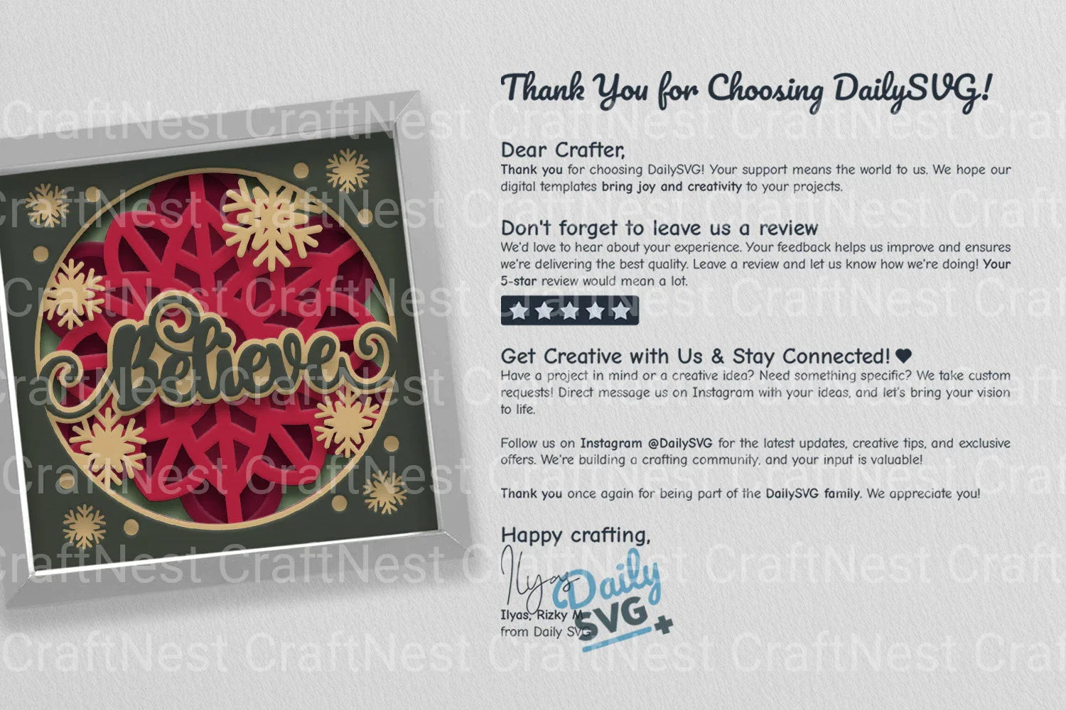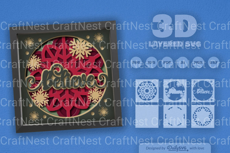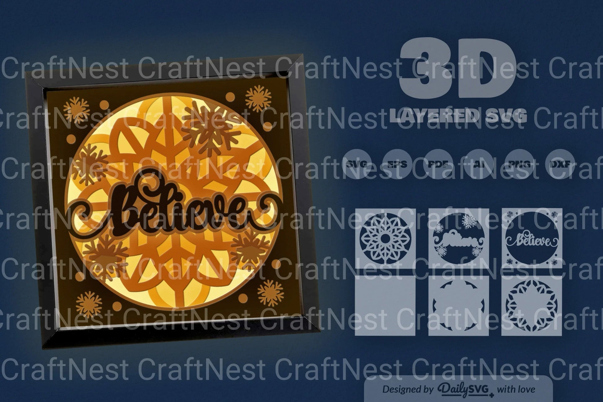 Embrace the holiday spirit with our 3D Christmas Believe Papercut SVG Bundle. Perfect for festive crafts, this bundle features intricate designs that bring a magical touch to your Christmas decorations. Ideal for DIY projects, cards, and gifts, these SVG files ensure your creations stand out this holiday season.