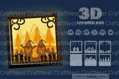 3D Christmas Gnomes in Snowy Scene Papercut SVG Bundle