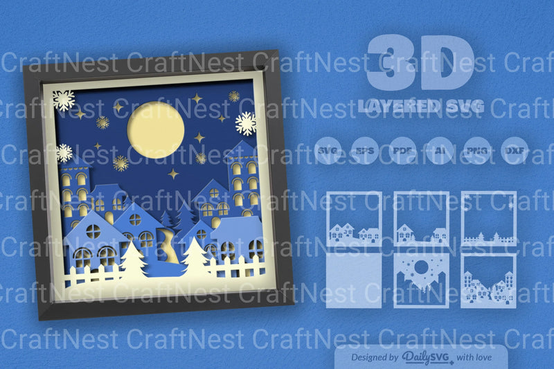 Transform your holiday crafts with the 3D Christmas In Town Papercut SVG Bundle. Featuring intricate designs of festive townscapes, this bundle is perfect for creating enchanting holiday decorations and personalized gifts. Ideal for crafters and DIY enthusiasts looking to add a magical touch to their Christmas projects.