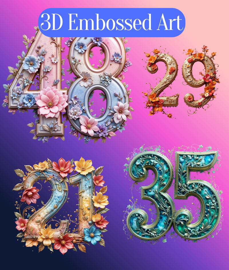 Enhance your creative projects with our 3D Embossed Numbers Clipart Bundle, featuring intricately designed numbers perfect for digital art, scrapbooking, and personalized gifts. Ideal for adding a unique touch to invitations, educational materials, and more, this versatile collection offers endless possibilities for artistic expression. Elevate your designs with these stunning, high-resolution clipart numbers that bring depth and style to any project.