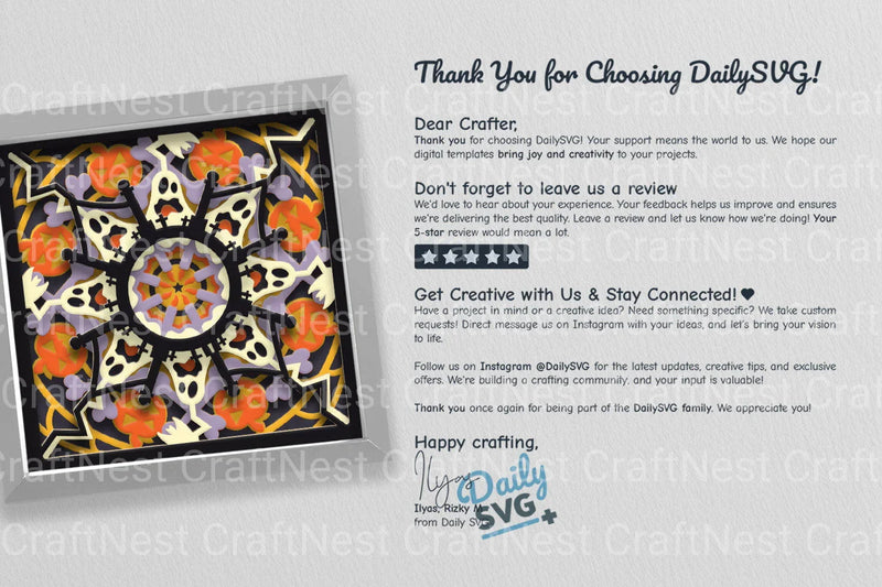 Unleash your creativity with the 3D Halloween Boo Mandala Papercut SVG Bundle. Perfect for spooky season crafts, this bundle features intricate mandala designs that bring a hauntingly beautiful touch to your Halloween decorations. Ideal for papercutting enthusiasts and DIY projects, these SVG files ensure precision and ease of use. Transform your home into a Halloween haven with these unique, eye-catching designs.