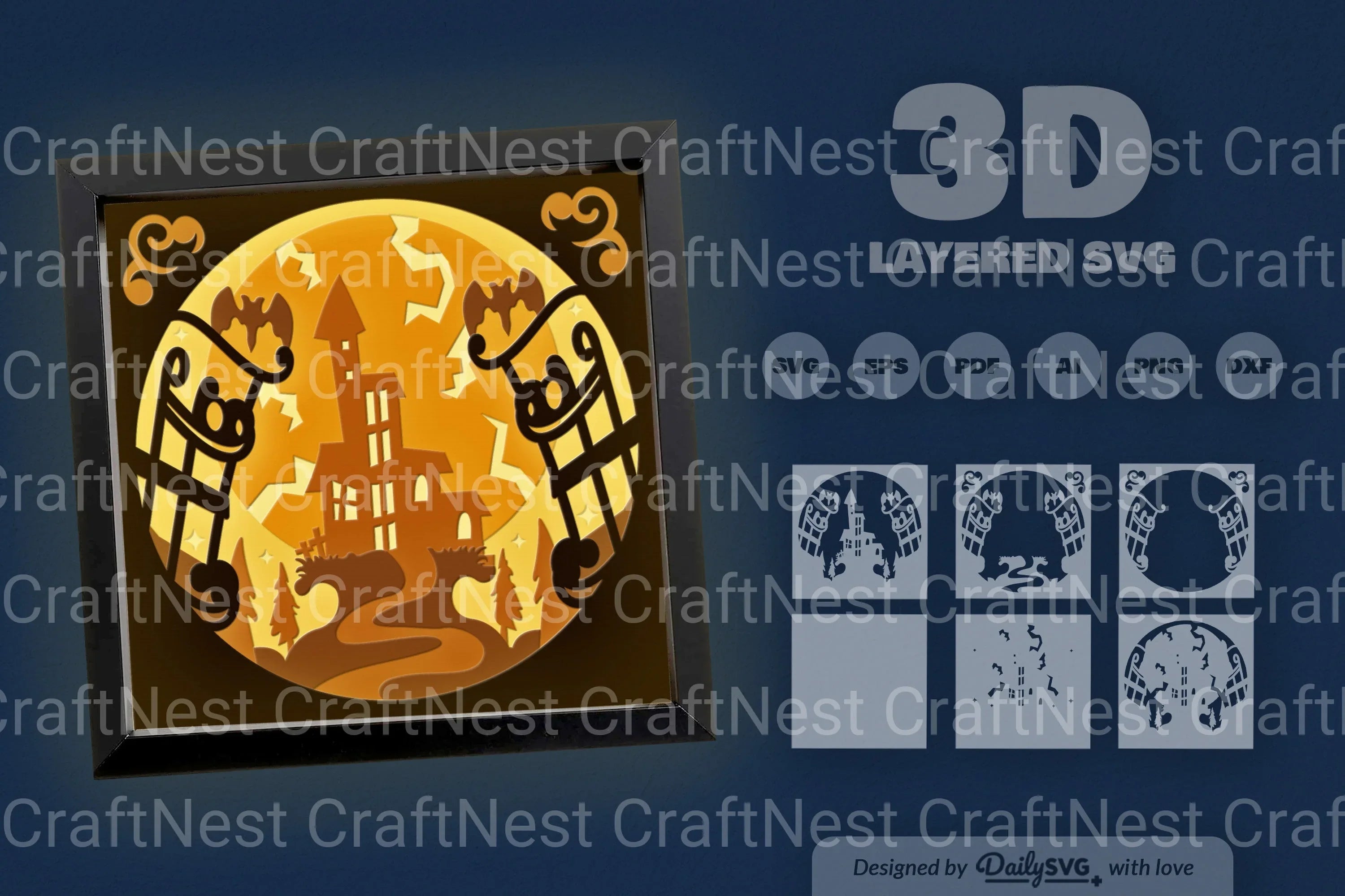 Unleash the spookiness with our 3D Halloween Haunted Castle Papercut SVG Bundle. Perfect for crafting eerie decorations, this bundle features intricate haunted castle designs, ideal for Halloween parties and haunted house themes.