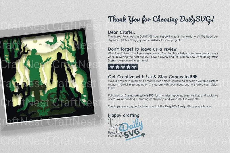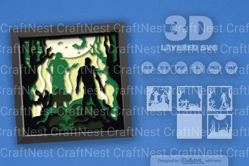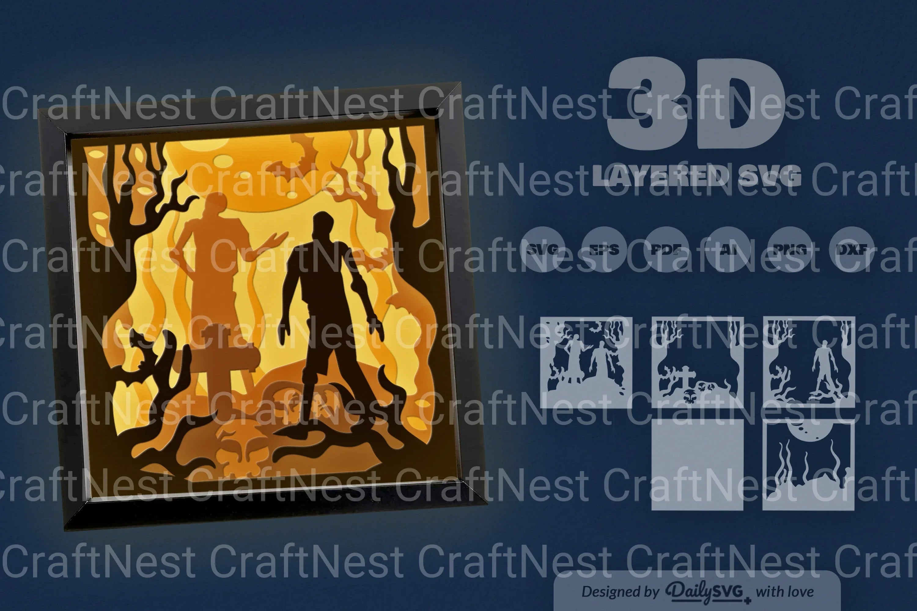 Unleash the eerie charm of Halloween with our 3D Zombie Scene Papercut SVG Bundle. Perfect for crafting spine-chilling decorations, this bundle features intricate zombie designs that bring your haunted visions to life. Ideal for Halloween parties, spooky home decor, and creative papercraft projects.
