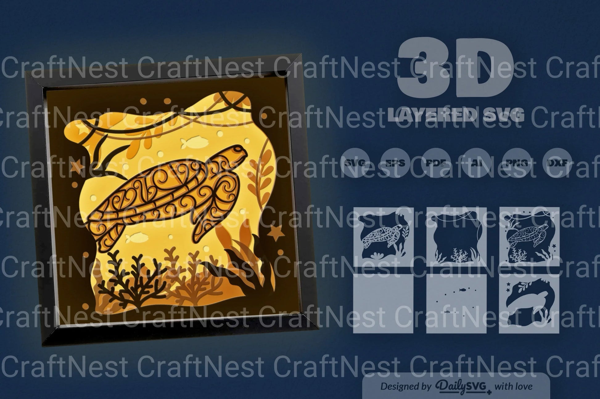 Discover the enchanting 3D Mandala Sea Turtle Papercut SVG Bundle, perfect for ocean-themed crafts and decor. Create stunning layered designs with intricate sea turtle patterns, ideal for scrapbooking, card making, and home decoration projects.