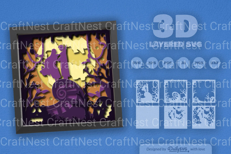 Enchant your Halloween crafts with the 3D Romantic Halloween Night Papercut SVG Bundle. Perfect for creating spooky yet charming decorations, this bundle features intricate designs that bring a magical touch to your seasonal projects.