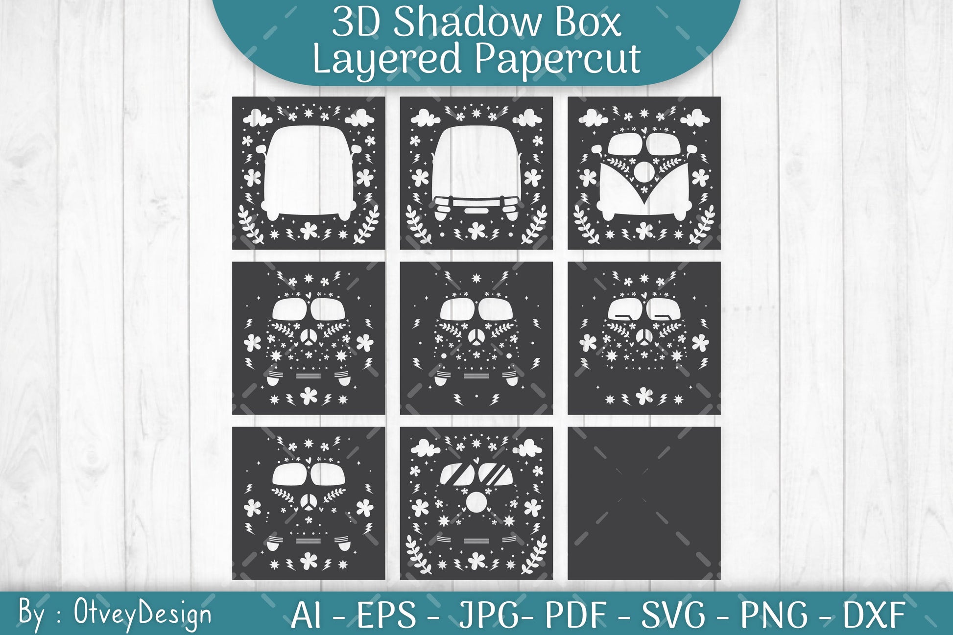 3D ShadowBox Hippie SVG Layered Papercut Bundle