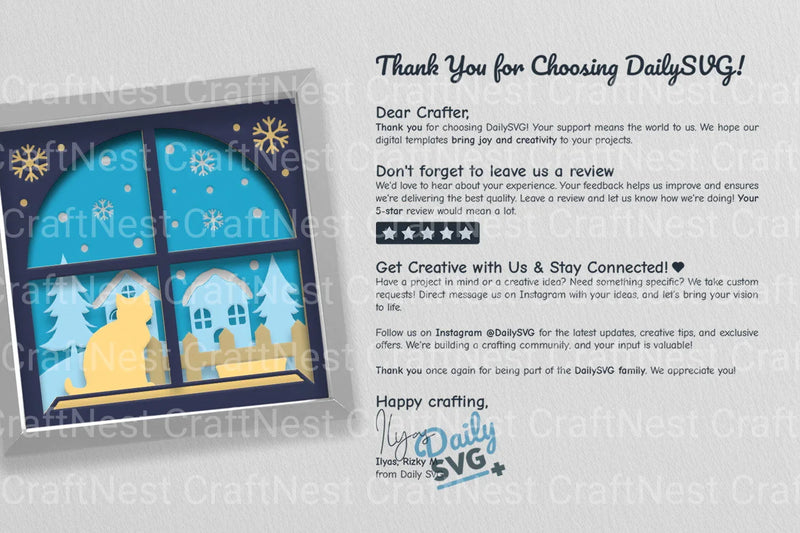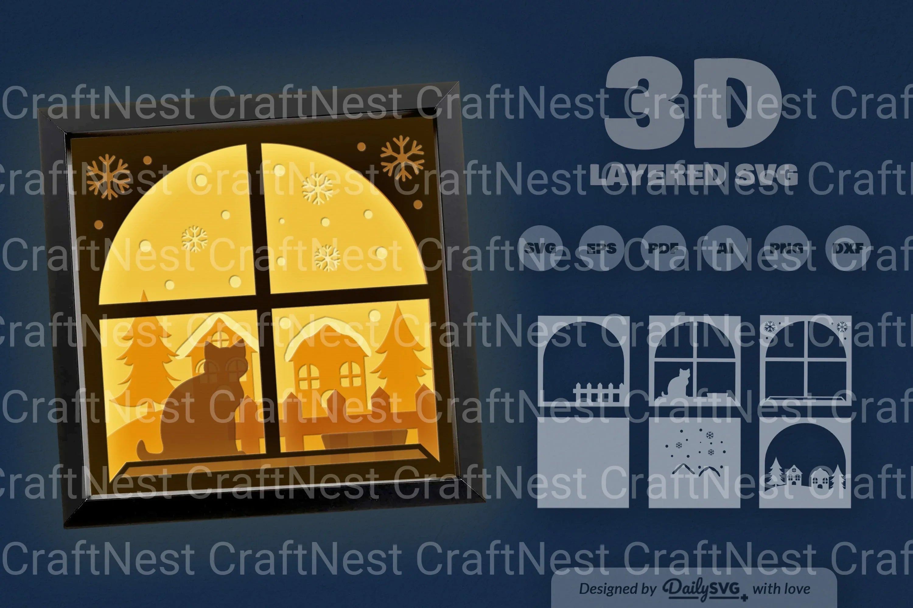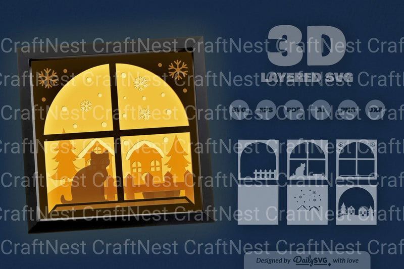Transform your crafts with the 3D Winter Cat on Windows Papercut SVG Bundle. Perfect for creating enchanting winter scenes, this bundle features intricate cat designs that add a cozy touch to any project. Ideal for holiday decorations, greeting cards, and home decor, these SVG files are easy to use and bring a whimsical winter charm to your creations.