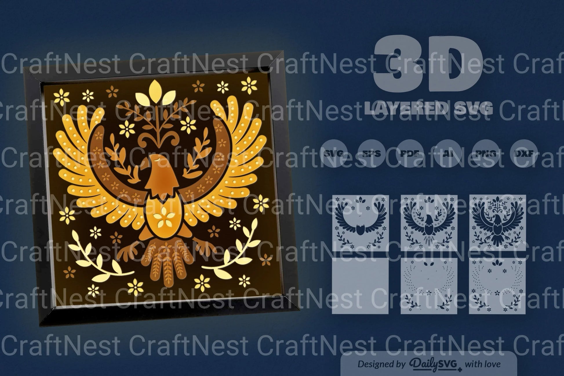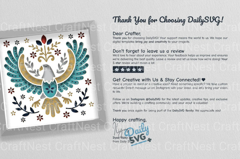 Celebrate Independence Day with our 4th July Eagle Folk Art Papercut Shadow Box SVG Bundle. Perfect for patriotic crafts, this bundle features intricate eagle designs that capture the spirit of freedom. Ideal for creating stunning shadow boxes, home decor, and unique gifts. Enhance your holiday projects with this versatile SVG collection.