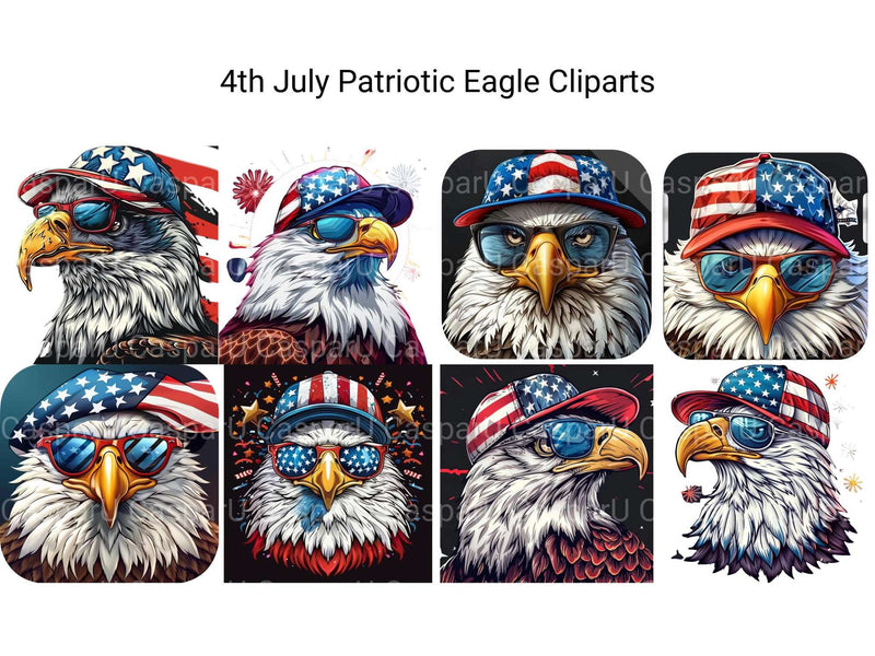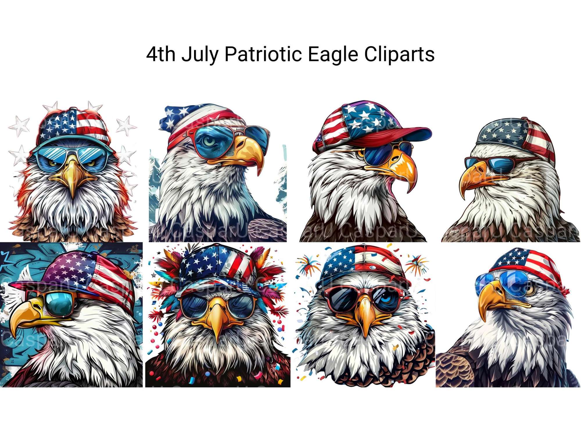 Soar with pride using this 4th of July Patriotic Eagle Clipart set, featuring majestic eagle designs, perfect for Independence Day crafts.
