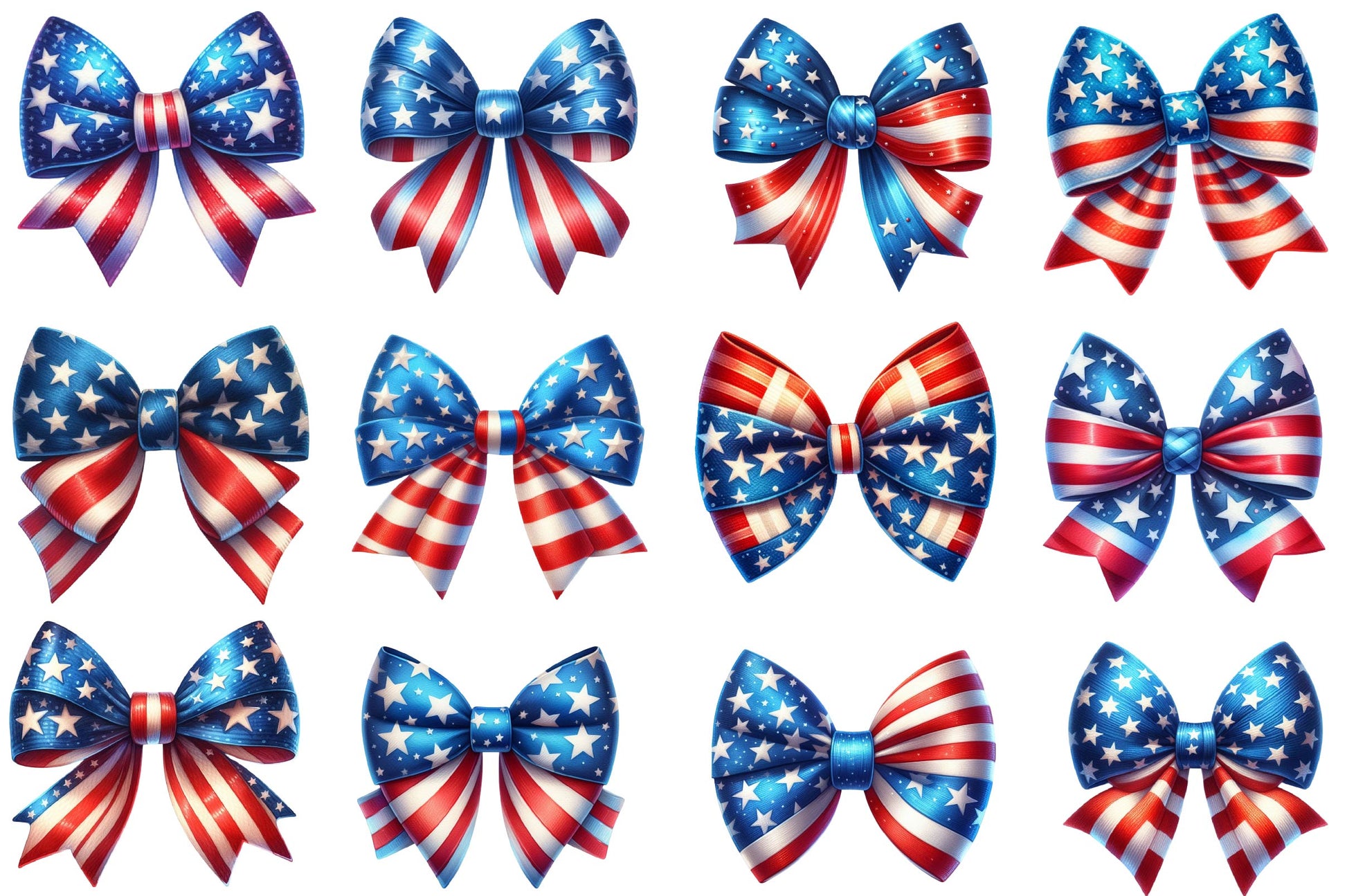 Tie with this 4th Of July Big Bow Ribbon Clipart Bundle, featuring patriotic bow designs, perfect for patriotic fashion crafts.