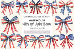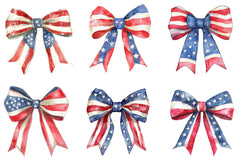 Style with this 4th Of July Bow Design Clipart Bundle, featuring patriotic bow designs, perfect for Independence Day fashion crafts.