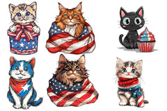 Purr with this 4th Of July Cat Clipart Bundle, featuring patriotic cat designs, perfect for Independence Day pet crafts.