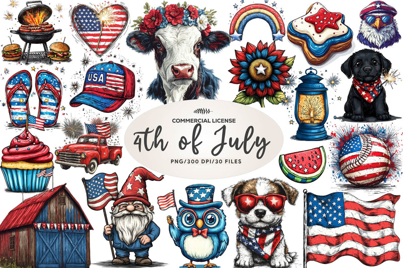 Celebrate with this 4th Of July Clipart Bundle, featuring Independence Day designs, perfect for patriotic holiday crafts.