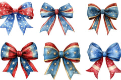 Celebrate with this 4th Of July Coquette Bow Clipart Bundle, featuring patriotic bow designs, ideal for Independence Day fashion crafts.