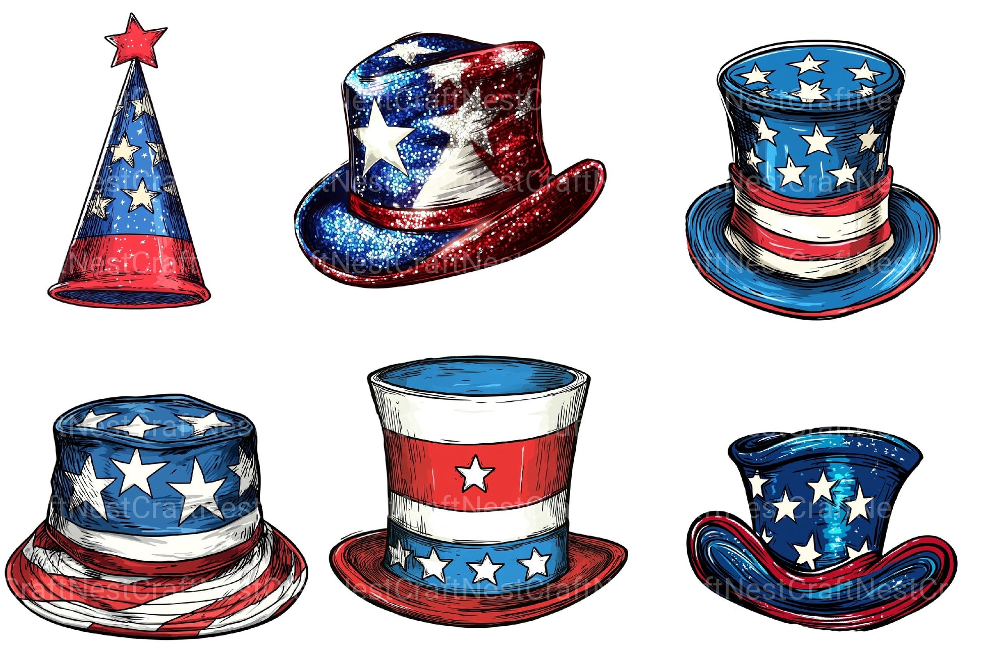 Top with this 4th Of July Hat Clipart Bundle, featuring patriotic hat designs, perfect for Independence Day fashion crafts.