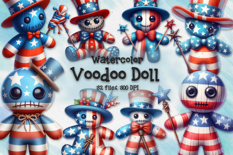 Celebrate Independence Day with our 4th of July Voodoo Doll Clipart Bundle, featuring unique and festive designs perfect for patriotic crafts and decorations.