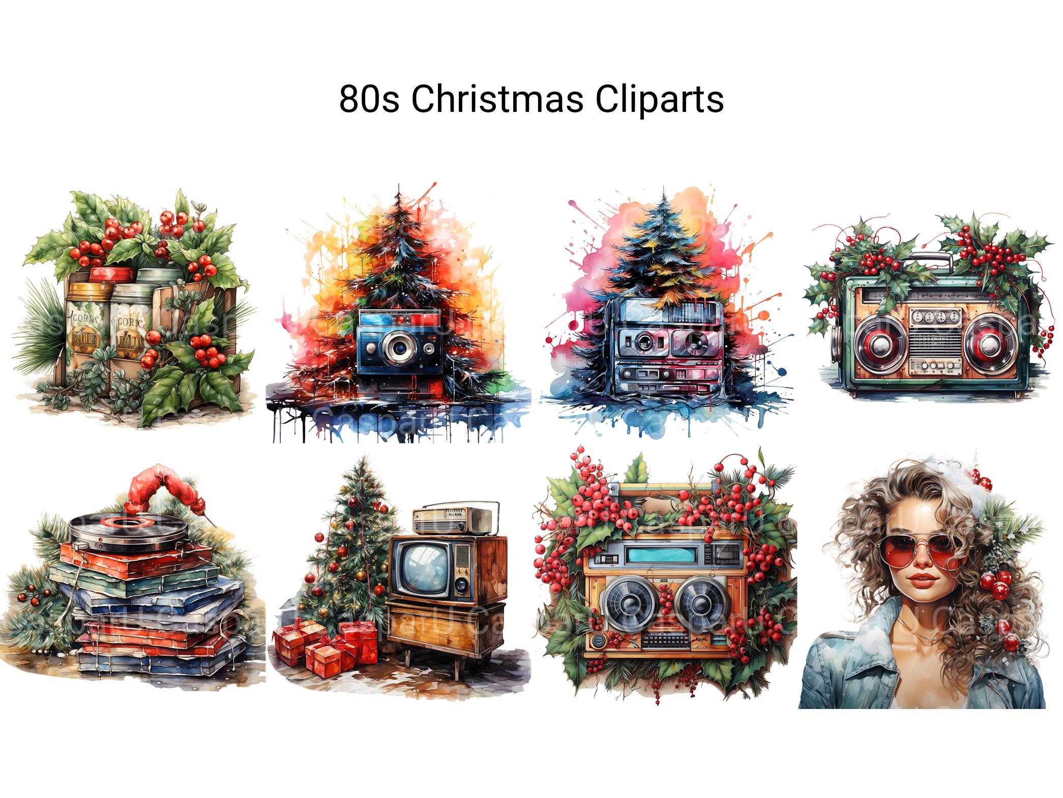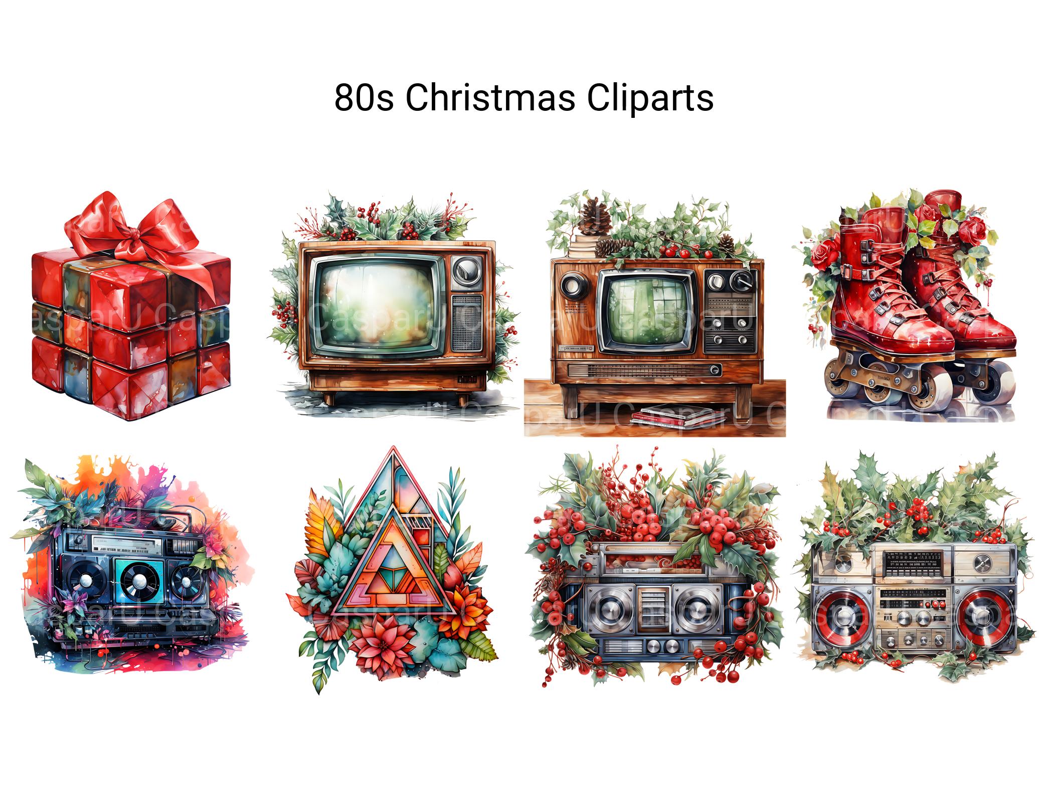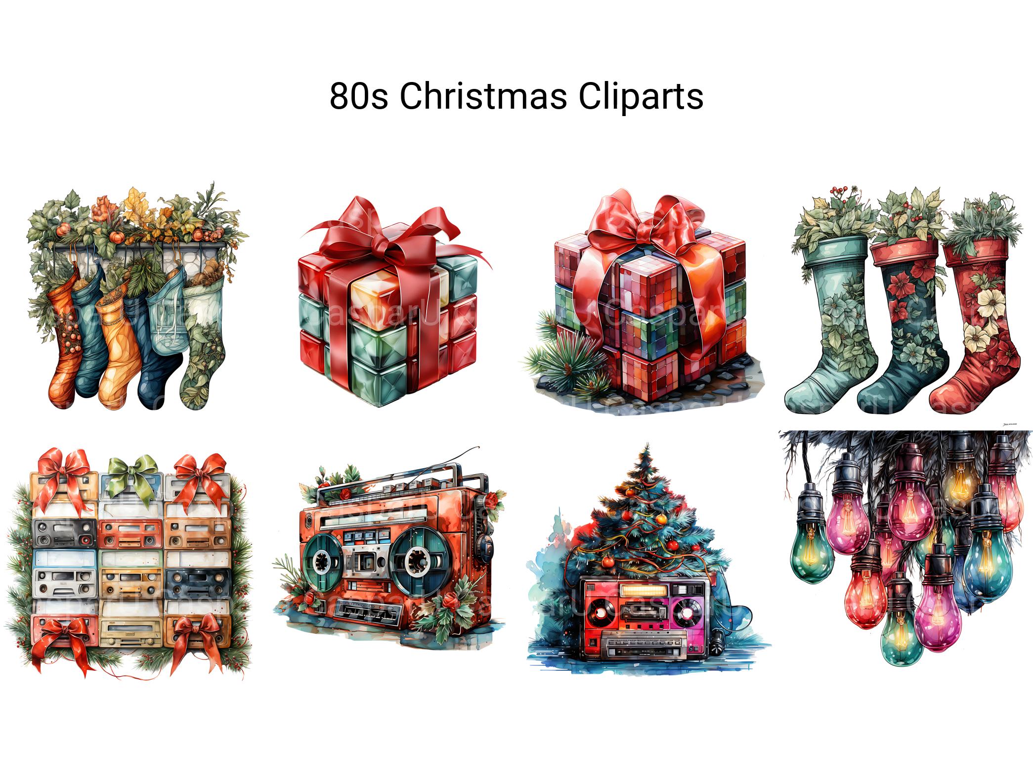 Embrace the neon glow and upbeat rhythms of the 1980s with our 80s Christmas clip art. These digital illustrations capture the retro glam and festive energy of the 80s, perfect for adding a pop of retro charm and holiday cheer to your designs, whether for Christmas-themed projects, party invitations, or nostalgic promotions, bringing a touch of 80s flair to your festive celebrations in vibrant detail.