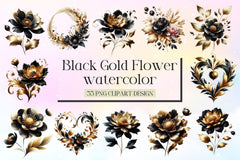 Abstract Black Gold Flower Clipart Bundle