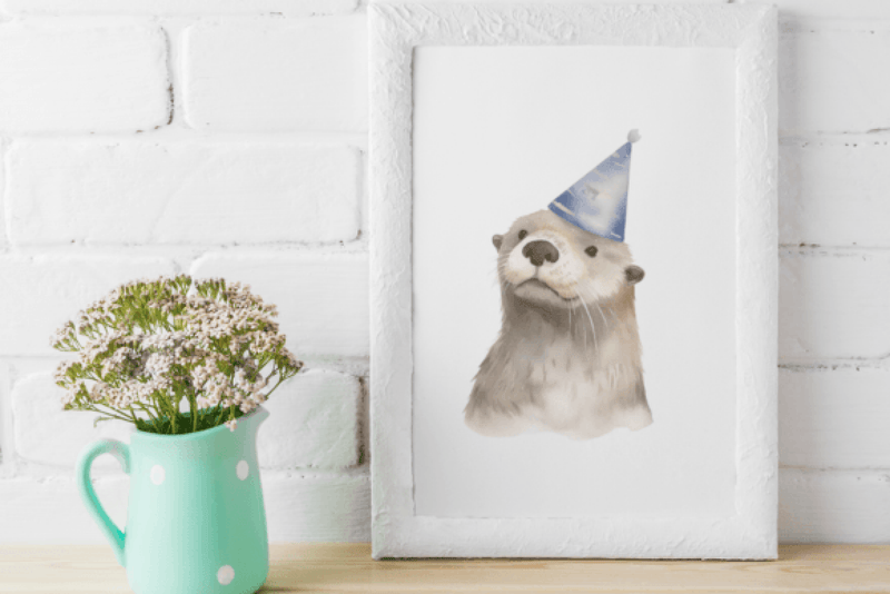 Celebrate with the Adorable Baby Otter Birthday Clipart Bundle, featuring charming otter designs perfect for delightful nursery projects and party invitations.