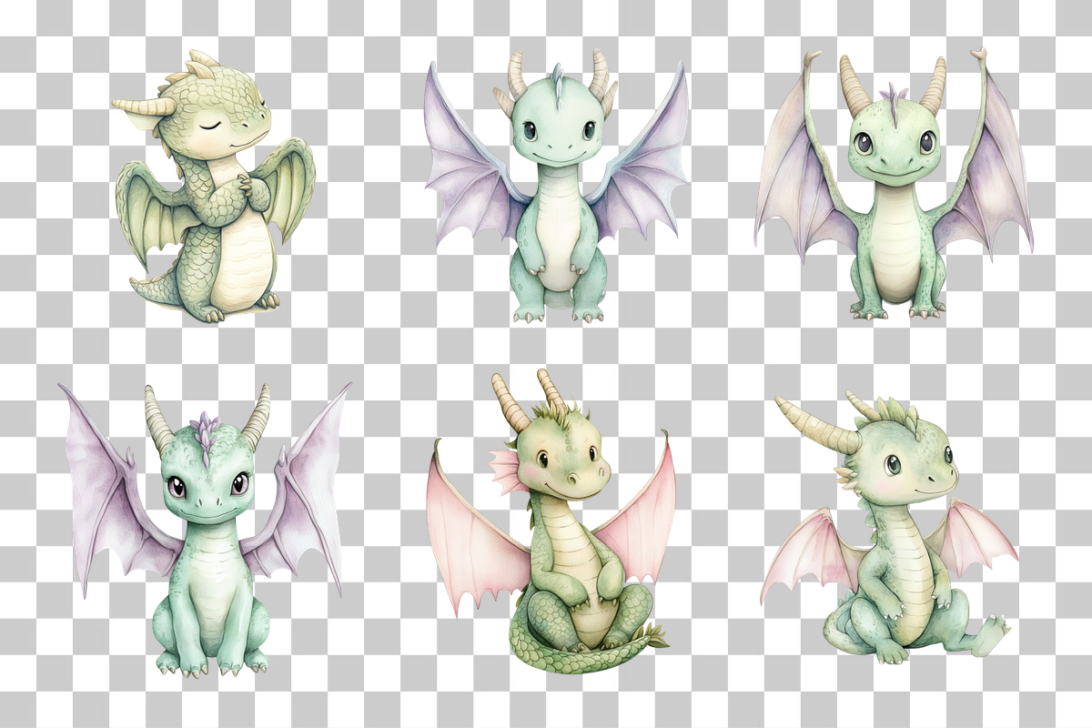Unleash creativity with our Adorable Fantasy Dragon Clipart Bundle, featuring charming dragon designs perfect for whimsical nursery projects and magical crafts.