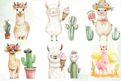 Desert with this Adorable Summer Llama And Cactus Clipart Bundle, featuring southwestern designs, ideal for summer animal crafts.