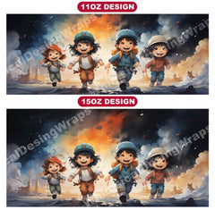 Join the adventure with our collection of digital mug wraps featuring adventurous kids exploring the great outdoors. Let these imaginative designs inspire your next journey while enjoying your favorite drink.
