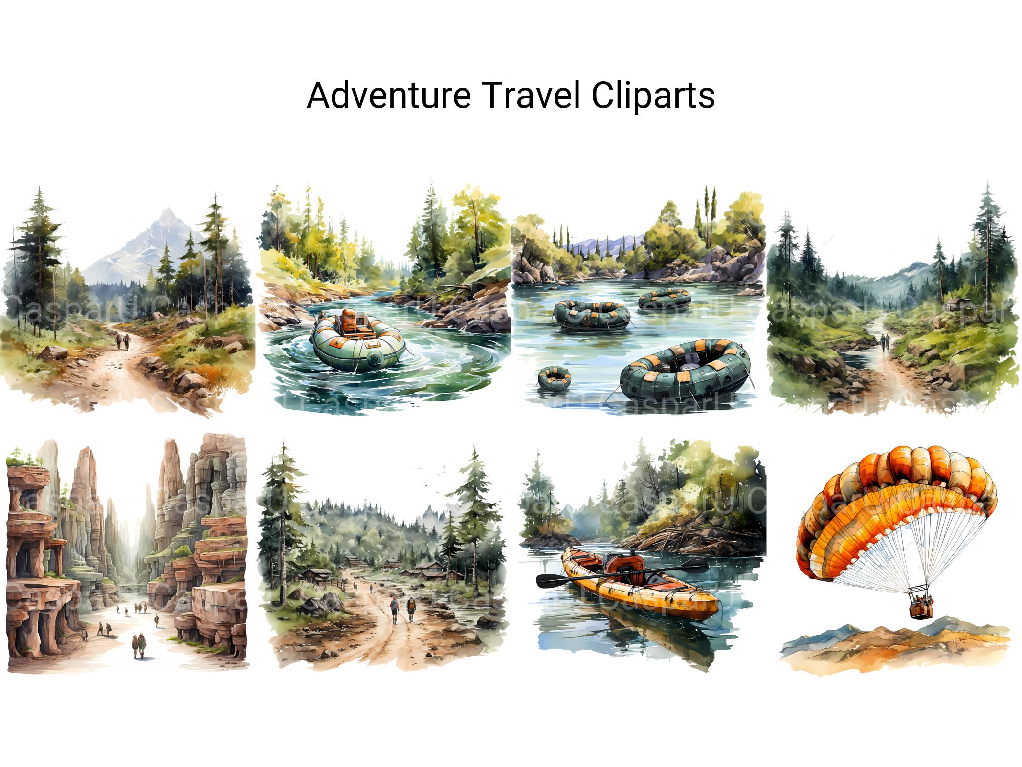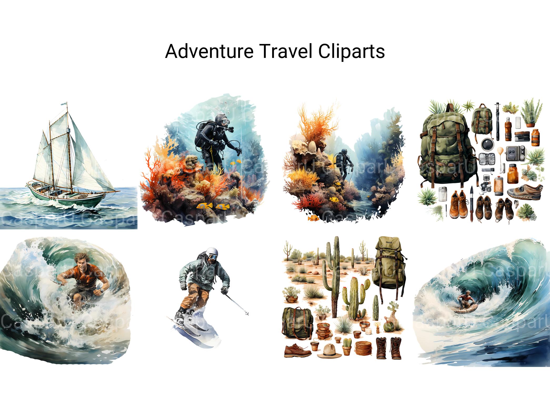 Embark on thrilling adventures with digital clip art featuring outdoor activities, rugged landscapes, and adrenaline-fueled pursuits. From mountain hikes to whitewater rafting, these illustrations capture the excitement and spirit of adventure travel, perfect for adding a sense of thrill and exploration to your projects, whether for travel posters, outdoor magazines, or adventure-themed designs, inspiring viewers to seek new experiences and embrace the great outdoors.
