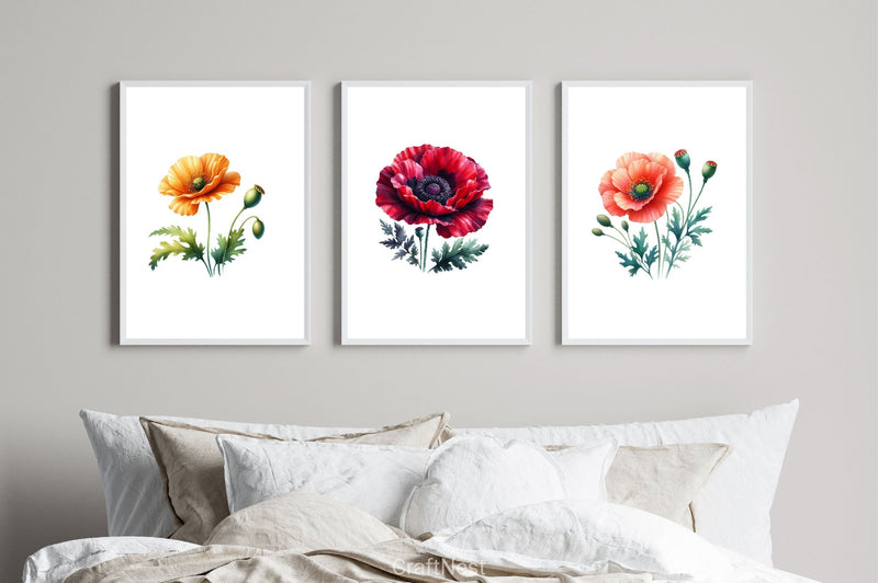 Aesthetic Poppy Flowers Clipart Bundle