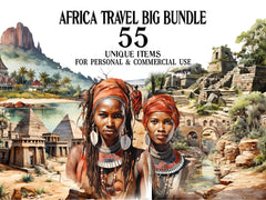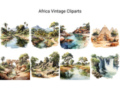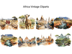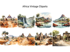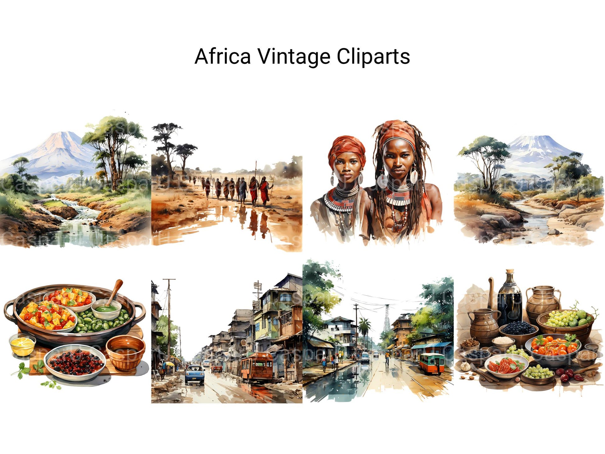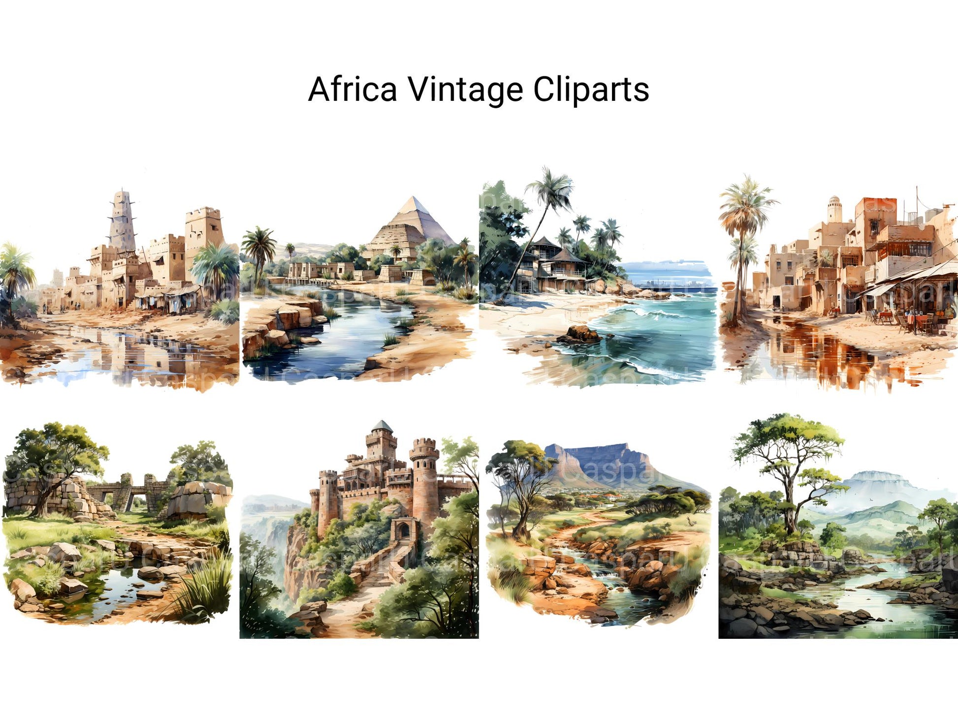 Immerse yourself in the rich heritage and vibrant culture of Africa with digital clip art featuring vintage-inspired illustrations. From tribal motifs to wildlife scenes, these nostalgic images capture the essence of Africa's diversity and beauty, perfect for adding a touch of retro charm to your projects, whether for travel souvenirs, cultural events, or educational materials, inviting viewers to journey back in time and explore the enchanting continent of Africa.