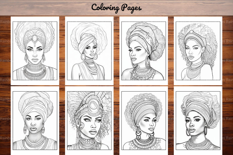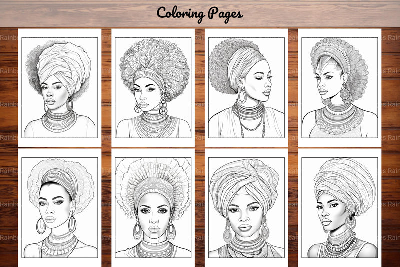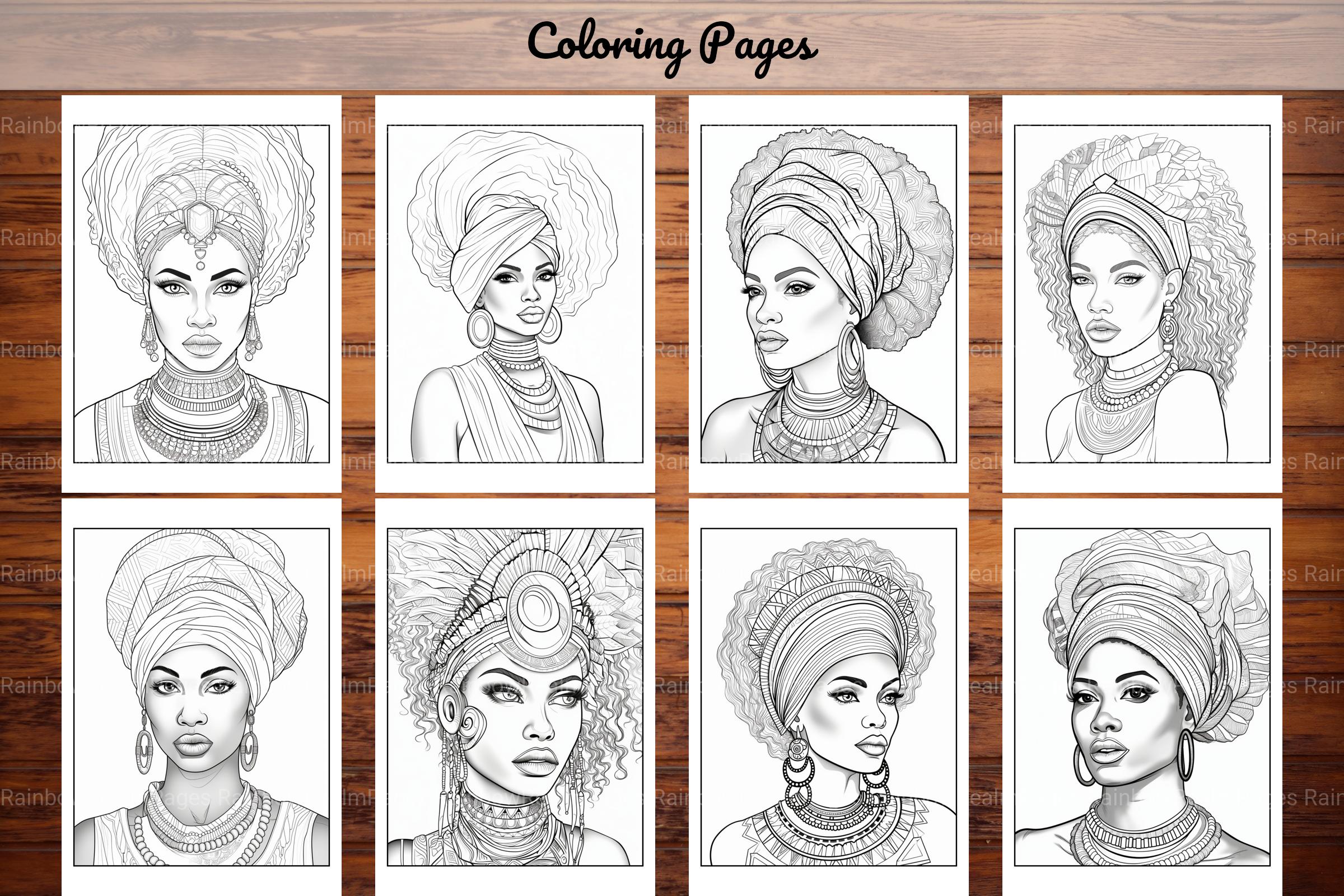 Honor with this African Black Woman Coloring Collection, featuring diverse African American women portraits, ideal for representation coloring.