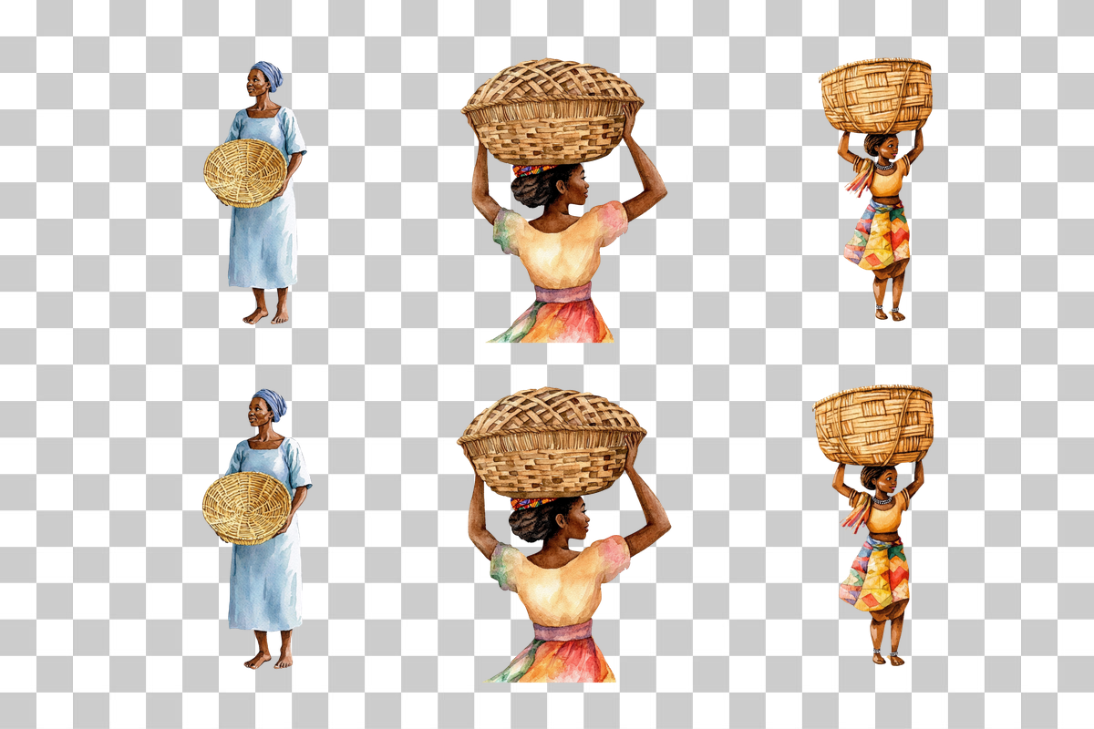 African Woman Carrying Basket Clipart Bundle