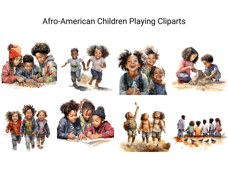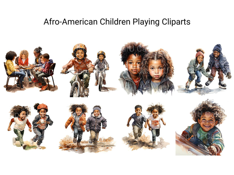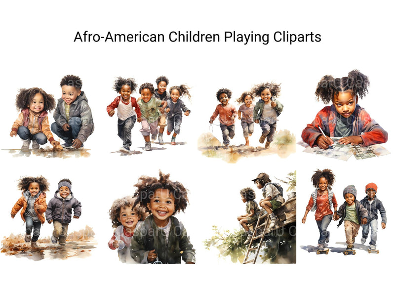 Celebrate the joy of childhood with our Afro-American Children Playing clip art. These digital illustrations depict children engaging in playful activities, fostering diversity and inclusivity, perfect for adding a touch of childhood innocence and cultural representation to your designs, whether for children's books, educational materials, or cultural initiatives, capturing the essence of childhood joy and diversity in heartwarming detail.
