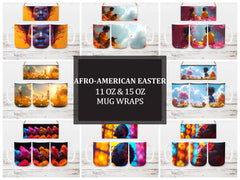 Celebrate Easter with cultural flair using our Afro-American Easter digital mug wraps. Adorned with vibrant colors and intricate patterns inspired by African heritage, these wraps bring a sense of joy and tradition to your coffee or tea time. Enjoy a cup of your favorite beverage adorned with these culturally rich mug wraps, perfect for anyone who appreciates the beauty and diversity of Afro-American art.