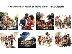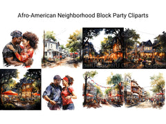 Embrace community and unity with our Afro-American Neighborhood Block Party clip art. These digital illustrations depict vibrant gatherings filled with music, food, and fellowship, promoting diversity and togetherness, perfect for adding a touch of community spirit and cultural representation to your designs, whether for event promotions, neighborhood initiatives, or cultural celebrations, celebrating the joy and camaraderie of Afro-American block parties in lively detail.