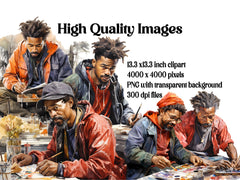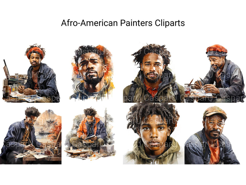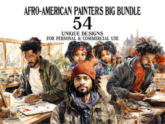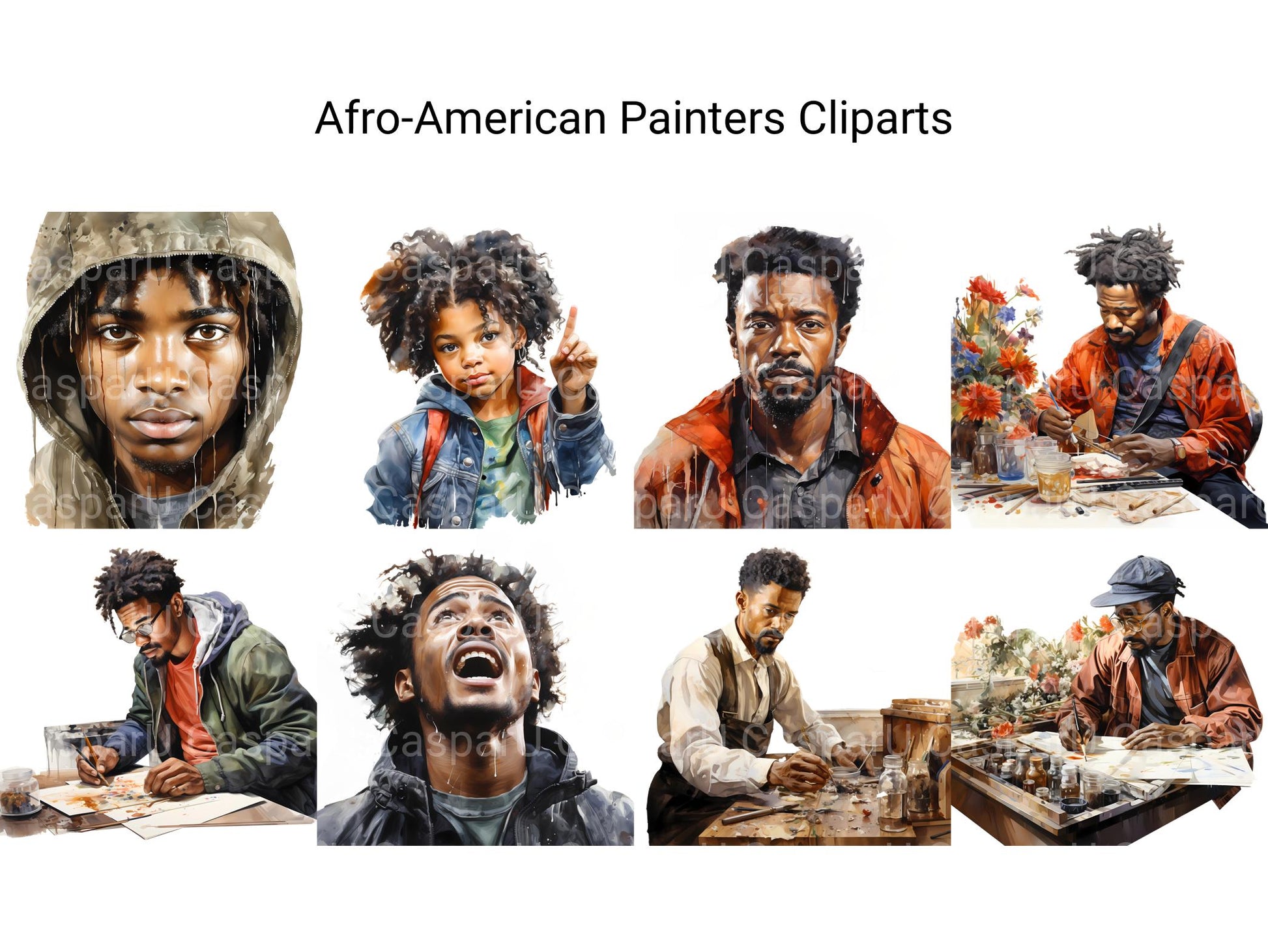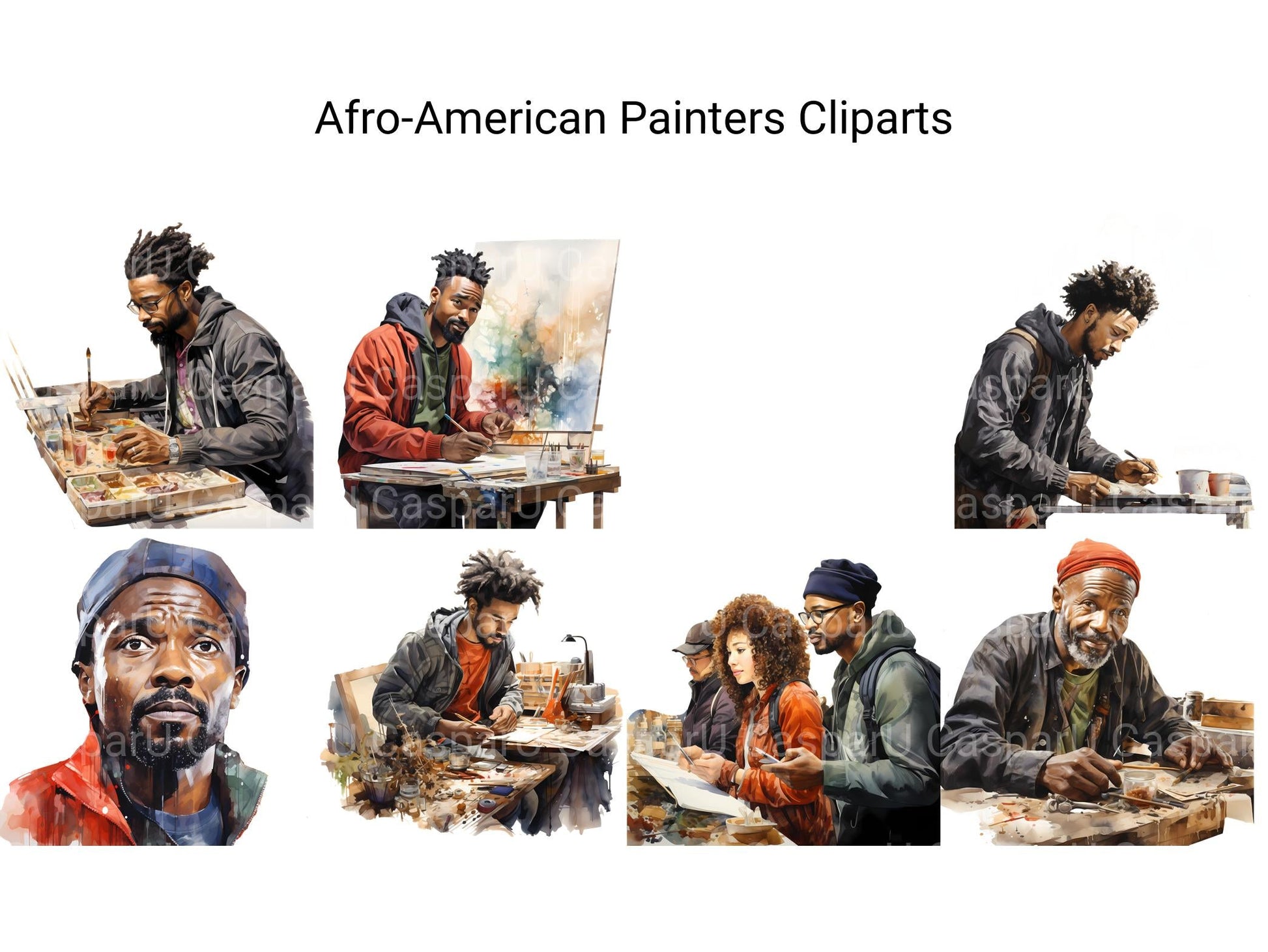 Explore the vibrant world of artistry with our Afro-American Painters clip art. These digital illustrations showcase talented painters creating beautiful works of art, capturing cultural diversity and creativity, perfect for adding a touch of cultural richness and artistic inspiration to your designs, whether for art-themed projects, educational materials, or cultural celebrations, celebrating the talent and creativity of Afro-American painters in captivating detail.