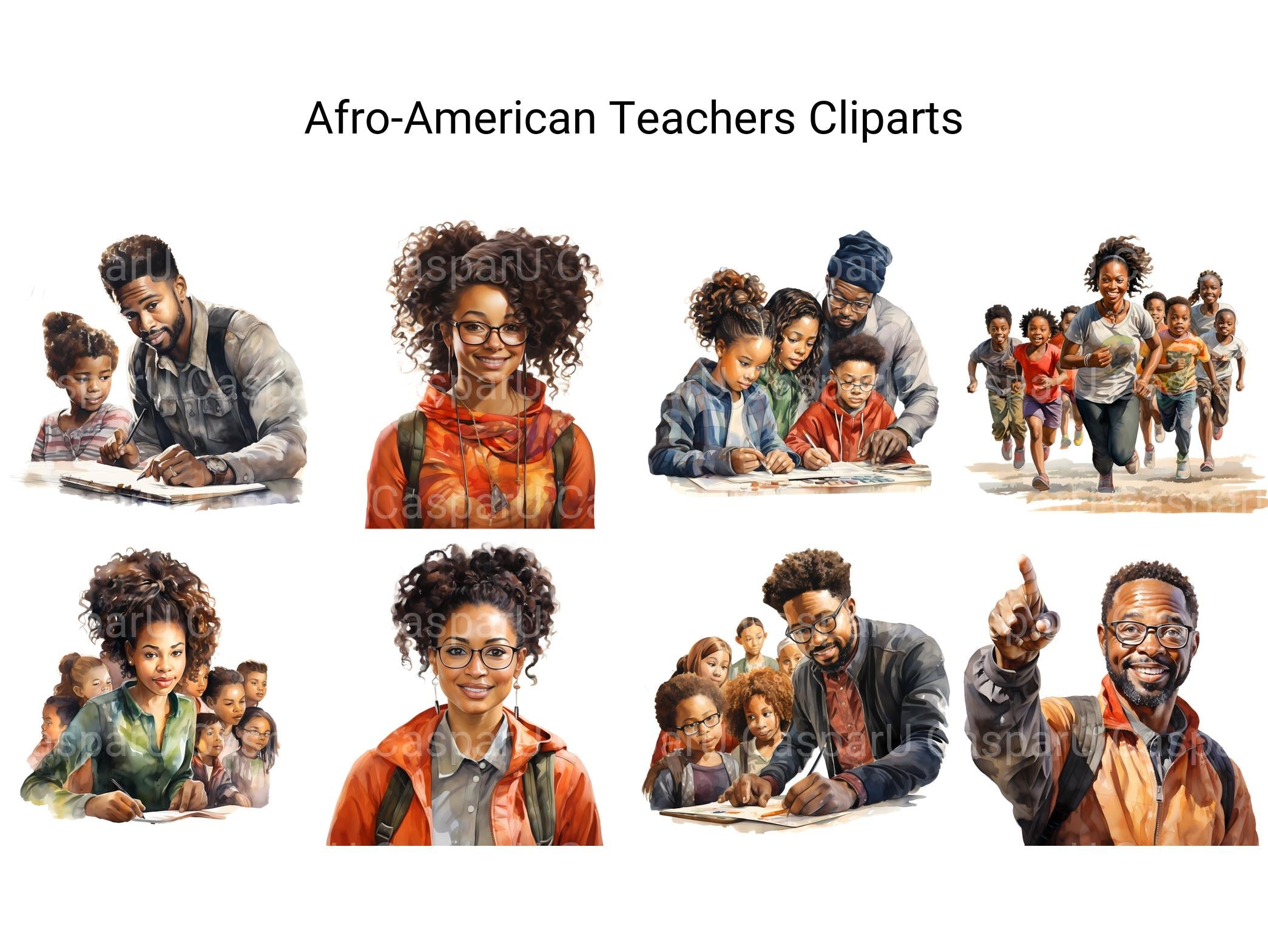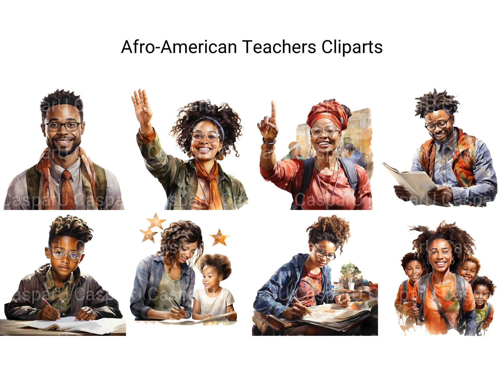 Honor the dedication and wisdom of educators with our Afro-American Teachers clip art. These digital illustrations depict teachers guiding and inspiring students with care and expertise, promoting diversity and excellence in education, perfect for adding a touch of mentorship and cultural representation to your designs, whether for educational materials, school-themed projects, or appreciation gestures, celebrating the vital role of Afro-American teachers in nurturing future generations.