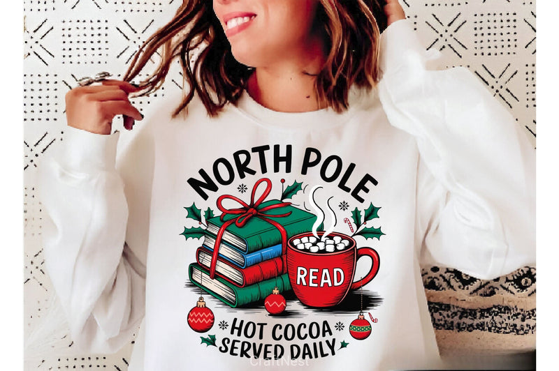 Christmas designs for book lovers combining holidays with reading themes.