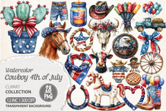 America Cowboy 4th Of July Clipart Bundle
