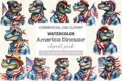 Roar with this America Dinosaur 4th Of July Clipart Bundle, featuring patriotic dinosaur designs, perfect for prehistoric Independence Day crafts.
