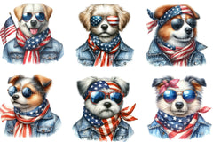 Patriotic with this America Dog 4th Of July Clipart Bundle, featuring American dog designs, perfect for Independence Day pet crafts.