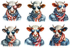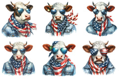 Graze with this America Highland Cow 4th Of July Clipart Bundle, featuring patriotic fluffy cow designs, ideal for Scottish-American crafts.