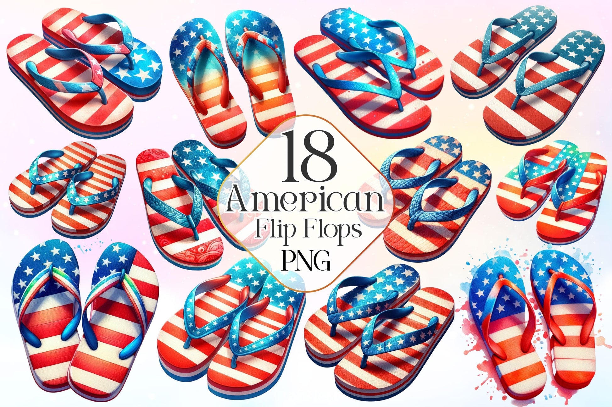 Patriotic flip flop designs perfect for American summer fashion projects.