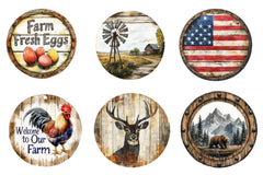 American Rustic Round Metal Wood Sign Clipart Bundle