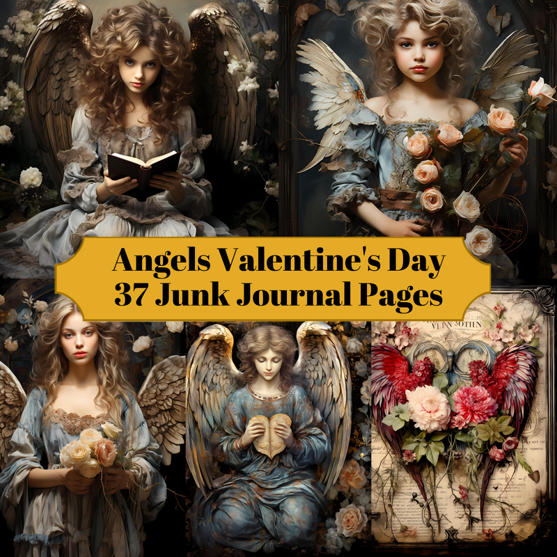 Experience the celestial beauty of love with our Angels-themed Valentine's Day digital junk journal. Featuring heavenly beings, ethereal landscapes, and divine motifs, this journal provides a serene space for capturing memories, doodling, and expressing your creativity amidst the celestial grace and spiritual harmony of angel-inspired Valentine's Day celebrations, perfect for cherishing the blessings of love and divine guidance.