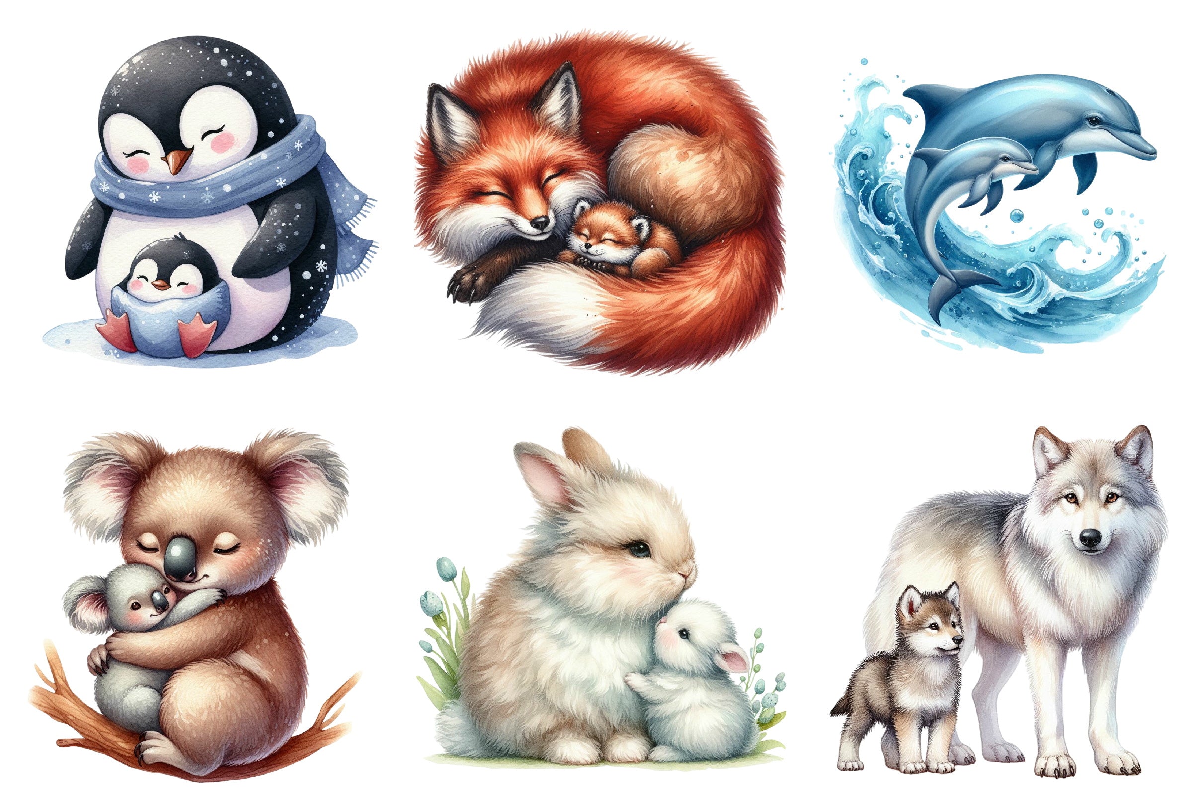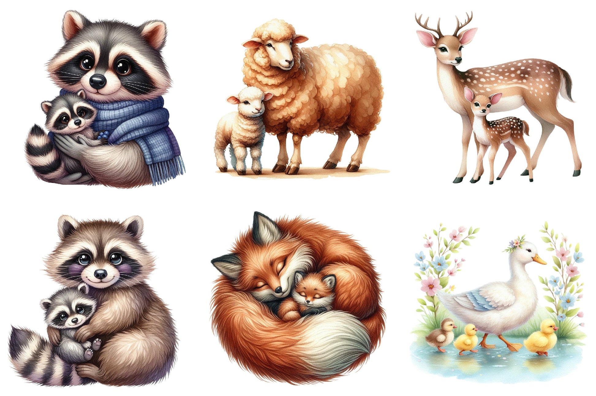 Enhance your projects with our Animal Moms Clipart Bundle, showcasing a variety of cute and cuddly animal pairs, perfect for personalized gifts and children's room decorations.