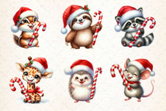 Animals Holding Candy Cane Clipart Bundle