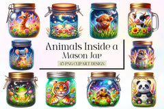 Container with this Animals Inside A Mason Jar Clipart Bundle, featuring creature vessel designs, perfect for rustic animal crafts.
