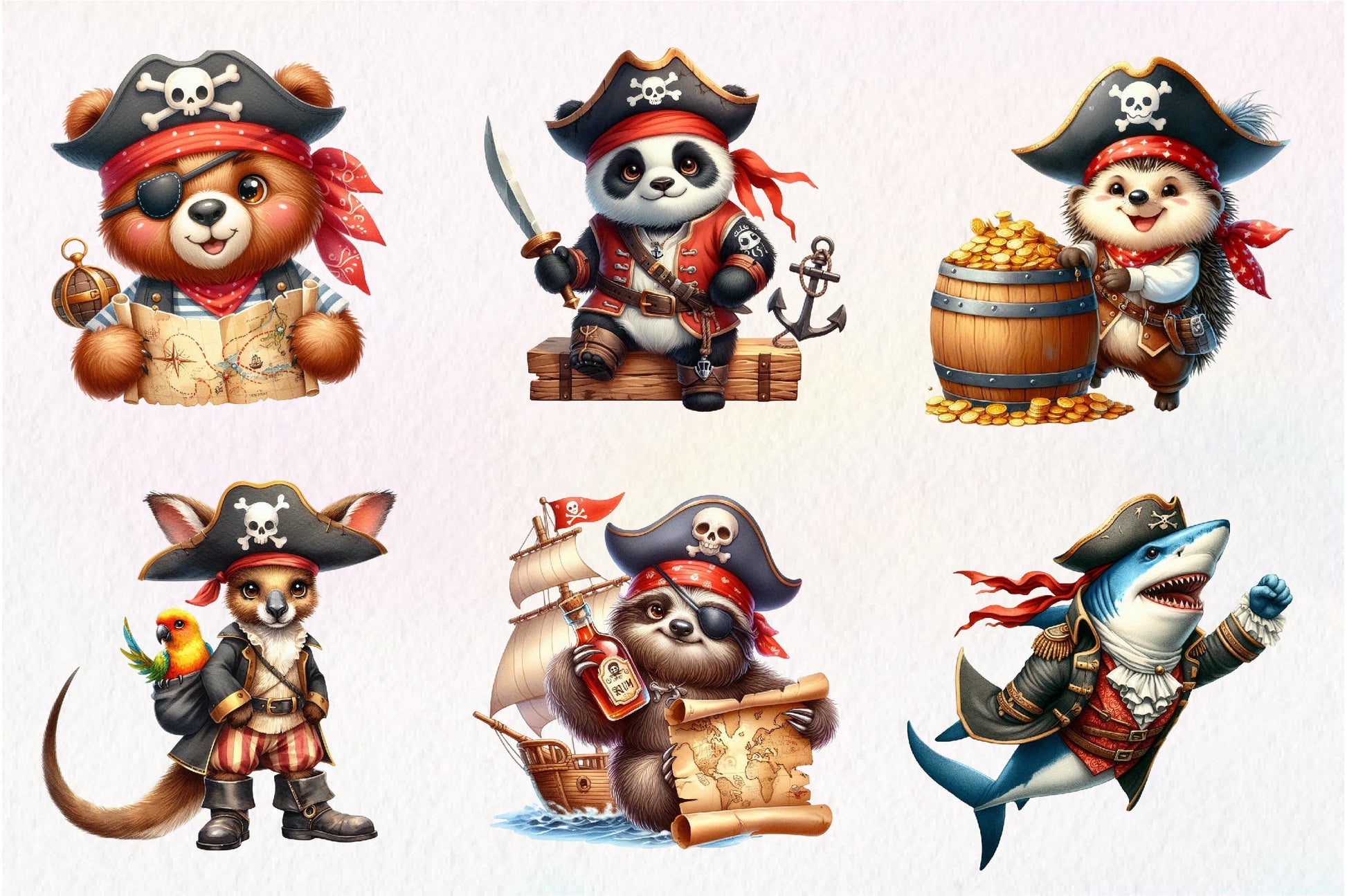 Sail with this Animals Pirate Clipart Bundle, featuring seafaring animal designs, ideal for adventure animal crafts.